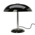 Table lamp with chromed metal stem. Black lacquered shade and base. Two sockets. H. 42 cm. Diam. 42 cm.