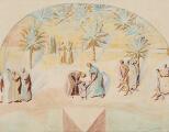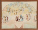 Religious scenery. Inscriped on the reverse. Watercolour on paper. Visible size 57×72 cm.