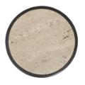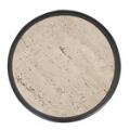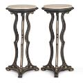 A pair of pedestals of black-painted and gold-inlaid wood, round slabs of travertine. 20th century. H, 100 cm. Diam. 47 cm. (2)
