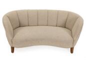 Two seater sofa with dark stained beech legs, upholstered with grey wool. Model 151. Manufactured by Slagelse Møbelværk. 1940s. L. 167 cm.
