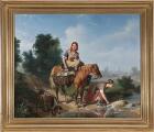 Two women collecting water from a river. Signed H. Buchard. Oil on canvas. 54×64.5 cm.