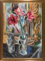 Opstilling med amaryllis, figur og spejl, 1952. Signeret Schyl; Sign. på bagsiden med datering 1952. Olie på lærred. 81×58 cm.