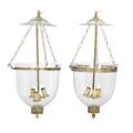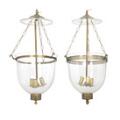 Et par ampler af klart glas, ophæng og monteringer af messing, hver med tre lysarme. Monteret til el. 20. årh. H. 60. Diam. 34. (2)