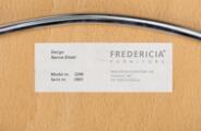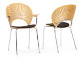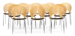 “Trinidad”. Sæt på 12 stole med stel af forkromet stål, heraf to armstole. Sæde og ryg af ahorn og bøg. Betrukket med sort uld. Formgivet 1993. Udført hos Fredericia Furniture. (12)