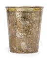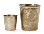 A Danish Baroque silver snakeskin beaker, gilded top rim, engraved with flower in leaf cartouches. Maker Jens Kieldsen Sommerfeldt, licensed in Aalborg 1726–1772. Weight 168 g. H. 11.5 cm. (2)