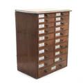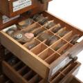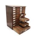 Watchmaker's cabinet containing several glasses for pocket watches and wristwatches. H. 59. W. 47. D. 31 cm.