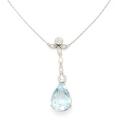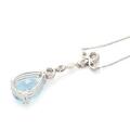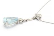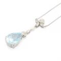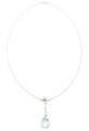 Aquamarin-, diamant- og perlehalskæde af 18 kt. hvidguld prydet med dråbeslebet aquamarin på ca. 13.00 ct., talrige old mine-cut diamanter på i alt ca. 0.72 ct. samt keshi kulturperle. Vægt ca. 9 g. Vedhæng L. 4,8 cm. Kæde L. 43,5 cm.