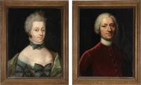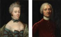 Portræt af Baron von Harling og hustru. Sign. A. Müller fec. Dresden 1743 på bagsiden af Baronen. Olie på lærred. 64×51 cm. (2).