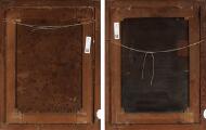 Lærrederne er dubleret. Én reparation/lap på bagsiden af maleriet af Baronen. Krakeleringer. Retoucheringer. Buler i lærredet i portrættet af hustruen. Behov for let overfladerensning.