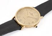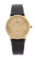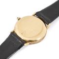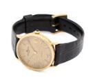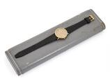 Wristwatch in 18k gold. Mechanical movement with automatic winding and date display. 1960s. Black leather strap with a gold-plated steel pin buckle. Ø 32 mm.