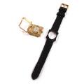 Diamond lady's wristwatch of gold plated steel. Quartz. Bezel set with numerous brilliant-cut diamonds totalling 0.22 ct. Colour Top Wesselton. Clarity VVS. Light dial with golden hands and hour markers. Detachable strap of black embossed leather. Case W. 30 mm. Two additional straps and box included.