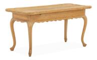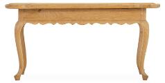 Sofabord af udskåret eg, opsat på cabriole ben. Svungen top med kehlet kant. Udført ca. 1940, antageligt hos snedkermester Frits Henningsen.