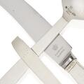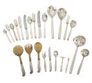 Comprising: 6 fish knives L. 19.2 cm., 16 dinner knives L. 24 cm., 15 dinner forks L. 21 cm., 12 dinner spoons L. 20.7 cm., 12 luncheon knives L. 20.5 cm., 14 luncheon forks L. 18 cm., 12 dessert spoons L. 17.7 cm., 12 pastry forks L. 15 cm. 12 teaspoons L. 13.8 cm., 12 coffee spoons L. 11.5 cm., 1 fruit- or child's knife L. 17 cm., 1 child's fork L. 13.7 cm. 1 child's pusher L. 10.3 cm. 1 marmalade spoon L. 13.9 cm., 1 salad set with horn part L. 20.4 cm., 1 short cold cu fork L. 12.2 cm., 1 server with horn part L. 20.6 cm., 1 large serving spoon L. 27.5 cm., 1 large serving spoon L. 26.5 cm., 1 small serving spoon L. 17.7 cm., 1 soup ladle L. 27 cm., 2 gravy ladles L. 18,5., 1 steak fork L. 22 cm.