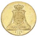 This rare specie Ducat featuring the Eben-Ezer motif was, according to Ernst, struck from Norwegian gold. Of the only 1,001 specimens minted, 700 were later reminted into the more “profitable” Courant Ducats.