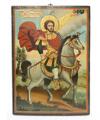 A Greek icon with depiction of St. George. Tempera on wooden panel. Second half-19th century. 49×35 cm.