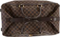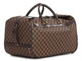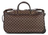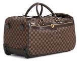 “Eole 50” kuffert/rejsetaske af mørkebrunt Damier Ebene kanvas med mørkebrune læderbesætninger, gyldne beslag, tre korte hanke, udtrækkeligt håndtag, en udvendig lynlås lomme, et lynlås rum med to indvendige lommer og mørkebrunt stof for. H. 25 x B. 50 x D. 30 cm. 2014.