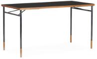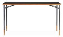 Rectangular table with steel base. Nutwood table edge and “shoes”. Manufactured by Onecollection, House of Finn Juhl. H. 72 cm. L. 130 cm. W. 65 cm.