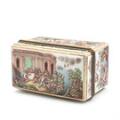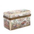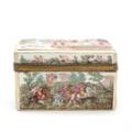 Skrin af porcelæn, dekoreret i farver og guld i basrelief med mytologiske scenerier i Capodimonte stil, montering af forgyldt bronze. Meissen. 19. årh.s slutning. H. 18. L. 29 . B. 17.