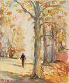 “Klart Oktobervejr Dyrehaven”. Signeret Ib Eisner; signeret med titel på bagsiden. Olie på lærred. 50×60 cm.