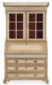 A Danish in Southern Jutland style bureau cabinet of painted and partly gilded wood, the upper part with a pair of glass doors. Denmark, partly 18th/19th century and later. H. 211 cm. W. 118 cm. D. 58 cm.