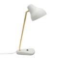 Patinated brass table lamp with adjustable white-lacquered metal base and shade. Base with switch. Manufactured by Louis Poulsen. H. 44 cm.