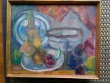 Opstilling. Sign. Erik Clemmesen, 1972. Olie på lærred. 46×38. Rammemål 48,5×40.