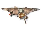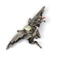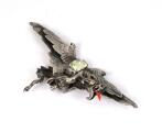 A brooch in the shape of a dragon set with a coral branch and a faceted syntethic zircon, mounted in silver. Weight app. 37 g. W. 5.7 cm. L. 11.7 cm.