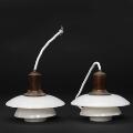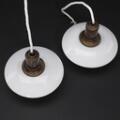 “PH-2/2”. Et par pendler med fatningshus af bruneret messing skærmholder mærket “Patented” samt “PH-2”. Skærme af enkeltlags opalglas, bundskål af matglas. Udført hos Louis Poulsen, 1930'erne. (2)
