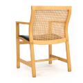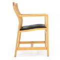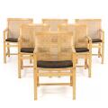 “The King Series”. Set of six chairs with maple frame. Seat upholstered with black leather. Manufactured and marked by Botium. (6)
