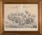Examined in frame. The paper has turned slightly brown. Printers crease.