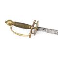 A Danish early 18th cent. brass mounted military small-sword with a c 75 cm long double edged Swedish? blade.