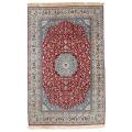 Nain Todesh tæppe, Isfahan-området, Persien. Klassisk design med medaljon på rød bund prydet med slyngede grene, palmetter, bladværk og dyremotiver. Ca. 720.000 kn. pr. m2. 20. årh.s anden halvdel. 333×211.