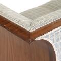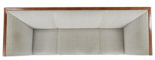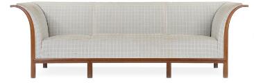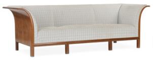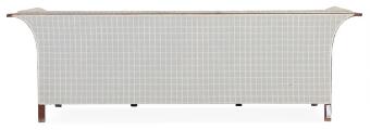 Three seater sofa with Cuban mahogany frame. Seat, sides and back upholstered with coloured patterend wool. Made by cabinetmaker Frits Henningsen. H. 77 cm. L. 241 cm. D. 80 cm.