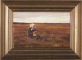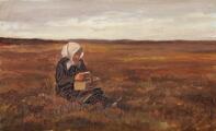 A woman in the moor. Signed Hans Smidth. Oil on canvas laid on cardboard. 18×29 cm.