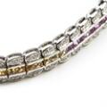 A sapphire and diamond bracelet set with numerous square-cut sapphires and brilliant-cut diamonds weighing a total of app. 1.60 ct., mounted in 18k white gold. Colour: Wesselton-Top Crystal (H-I). Clarity: VVS-VS. L. app. 18 cm. Weight app. 44.5 g.
