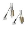 “Royal”. A pair of matte chromed steel wall lamps. Grey and white plastic shade. Oxidized metal handle. These examples manufactured 1950s by Louis Poulsen. H. 33. (2)