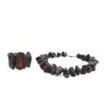 Amber necklace and bracelet set with lightly polished amber, mounting of sterling silver. L. 60 and 19 cm. (2)