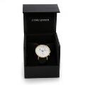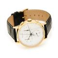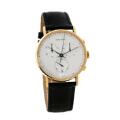 Herrearmbåndsur af 18 kt. guld. Dessin nr. 1317. Quartz værk med kronograf og dato. Hvid skive med sorte visere og timemarkører. Sort Georg Jensen rem med C-spænde af 18 kt. guld. Urets diameter 38 mm. Designet for Georg Jensen. 2000'erne.
