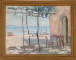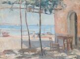 Beach view with fishing boats, Italy. Signed K.S. Oil on canvas. 51×67 cm.