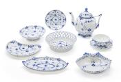 Bestående af: 1054 frugtkurv. 1. sort. 1115 assiet. 2. sort. 557 Assiet. 1. sort. 1119 tekande. 2. sort. 1173 assiet. 1. sort. 6×1130 tekopper. 1. sort. 1023 kagefad. 1. sort. 11×1088 tallerken. 1. sort. 1088 tallerken. Repareret.