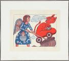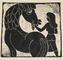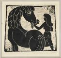 “Kvinden og hesten” and “Forureningsdjævelen”. Both signed Heerup. Lithograph and linocut. Visible sizes 38×47–59×63 cm. (2).