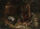 Nature morte with a duck, pheasants and a hare. Inscribed T. Kiellerup. Oil on canvas. 76×106 cm.