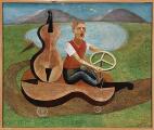 “Taxachaufføren synger”, 2000. Signeret Seppo Mattinen 2000. Olie på plade. 51×61 cm.