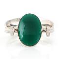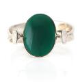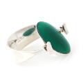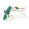 “Dew Drop” sterling silver cuff bracelet set with cabochon-cut green agate. Georg Jensen design no. 203A.