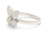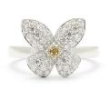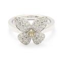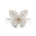 A diamond ring in the shape of a butterfly set with a fancy-cut natural green diamond weighing app. 0.16 ct. and numerous brilliant-cut diamonds weighing a total of app. 0.80 ct., mounted in 18k white gold. Colour: F. Clarity: VVS. Weight app. 6 g. W. 12.5 mm. Size 54.