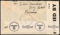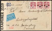 1941. 50/5 øre x 2 samt 5 øre givende ialt 105 øre på censurbrev stemplet VAAG 5.3.41 sendt til Vordingborg via USA/New York med både amerikansk og tysk censur. [ ✉ ]