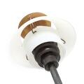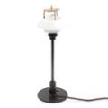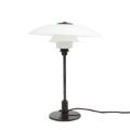 “PH-3,5/2”. Bordlampe af bruneret messing med skærme af opalglas, gennemgående afbryder og fatningshus af bakelit. Udført hos Louis Poulsen, 1940'erne. H. 45.