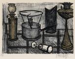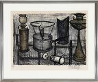Opstilling. Signeret Bernard Buffet, 112/175. Litografi i farver. Lysmål 48×60 cm.
