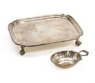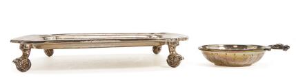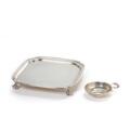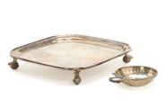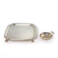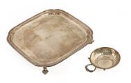 A four-sided English silver tray, Viner's Ltd, Sheffield 1934. L/W. 19 cm. And a tastevin, J.B: chatterley & Son, Birmingham. Diam. 7,5 cm. Weight 394 g. (2)