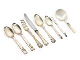 Silver and sterling silver cutlery and serving pieces. Made and stamped by Holger Kyster and Georg Jensen 1932 and after 1945. Together with a pair of silver-coloured metal soup spoons. Made and stamped Hans Hansen. L. 19.1 cm. (8)